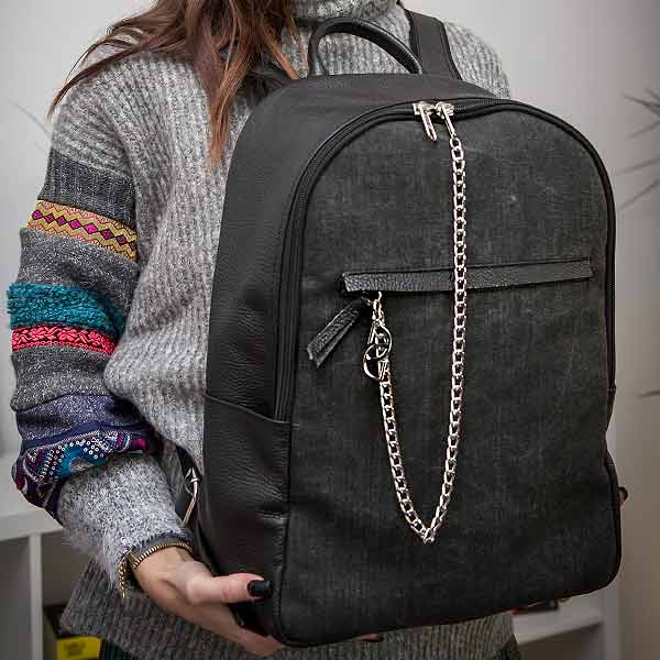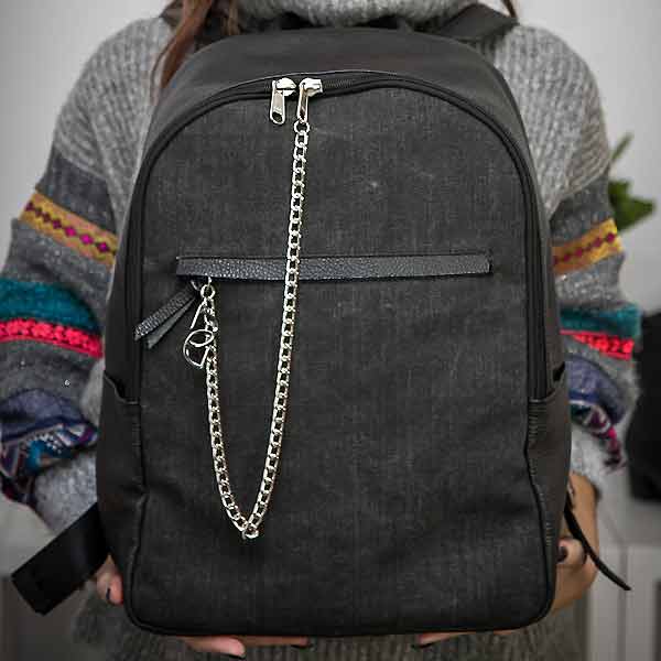 The Stellar Man Backpack has a spacious interior with a large slip pocket that works to seperate your everyday essentials - think a tablet, extra pair of shoes or a spare sweater. The bag is trimmed in black textured-leather with a fabulous chain to decorate your bag. A two-way zipper so it's really easy to fill with your staff. Keep your phone and cardholder within easy reach in the front pocket. Adjust the straps so they sit comfortably on your shoulders.