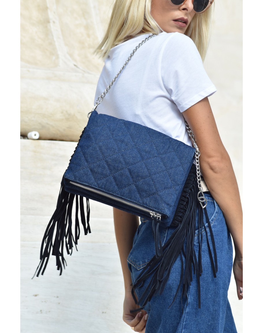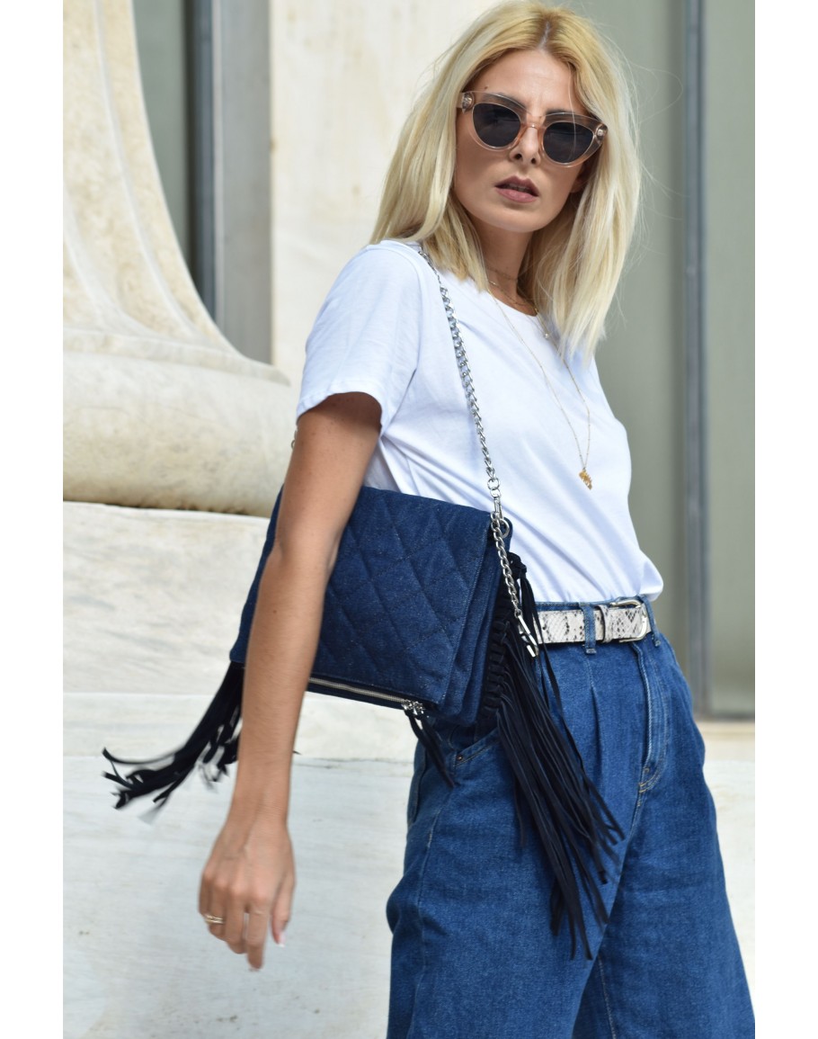 The Stellar "Diamonds+Fringes" bag is a fabulous clutch bag to accompany your afternoon and evening walks. It has two internal cases and a zipper case at the back It features a fabulous chain strap, that can be extended with a leather strap (included) and use it as a cross body or shoulder bag. Made piece by piece, with a hand quality design (patchwork sewn by hand) and fabulous details to decorate your bag.